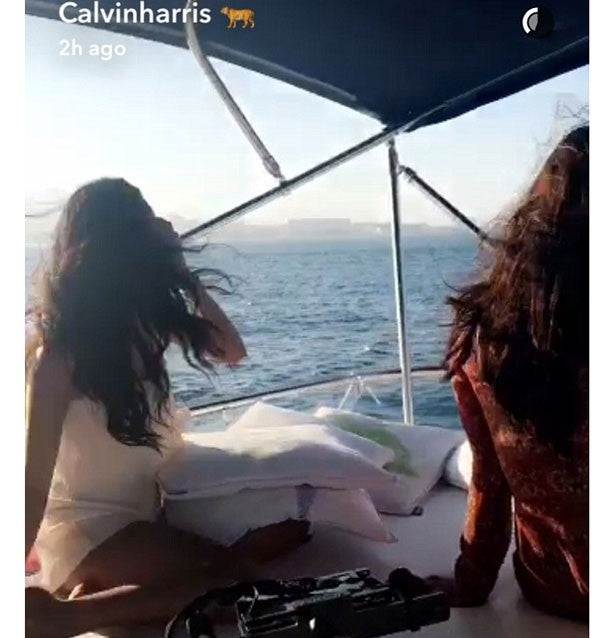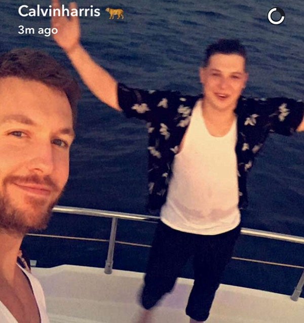 Calvin Harris is taking full advantage of the bachelor lifestyle -- and it appears he's over blondes. After breaking up with Taylor Swift earlier this month, the 32-year-old music producer posted a selfie to Snapchat on Tuesday of him with a bunch of brunette ladies on a yacht in Mexico. "I write songs," he captioned the photo.