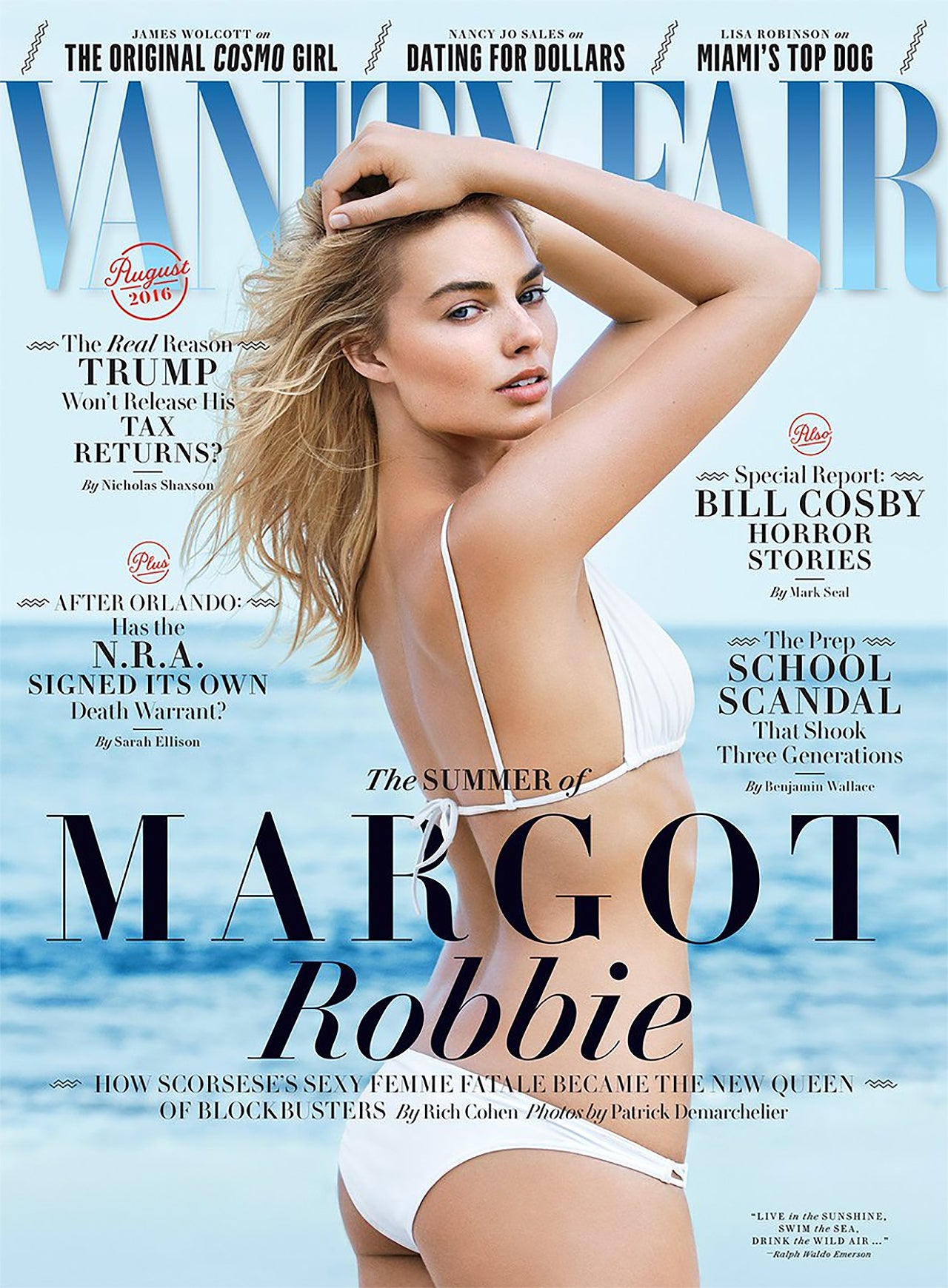 Even if that fake sex-having is with Leonardo DiCaprio, as Margot Robbie makes clear in Vanity Fair. The 26-year-old actress models a white bikini for the magazine's cover and, inside, got candid about her first "proper sex scene" in The Wolf of Wall Street.