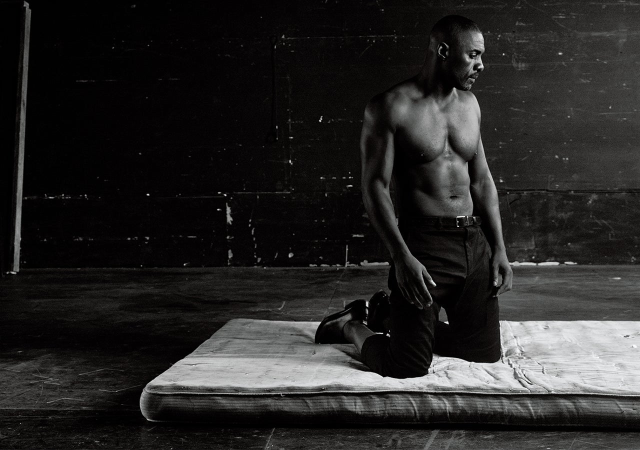 The 43-year-old British actor posed for a series of black-and-white shots for Interview magazine, looking handsome in a suit and a white tank top before eventually ending up shirtless.