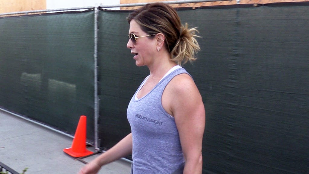 Rachel Green's got guns! Jennifer Aniston stepped out on Monday looking – in the words of Snoop Dogg – “toned, tan, fit and ready.” The 47-year-old Cake actress was spotted visiting a salon in West Hollywood, California while wearing a fitted grey tank top.