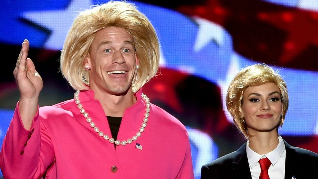 2016's hosts, John Cena and Victoria Justice, channeled their inner presidential candidates -- and did a little gender reversal -- during one of the night’s many spoofs and skits.