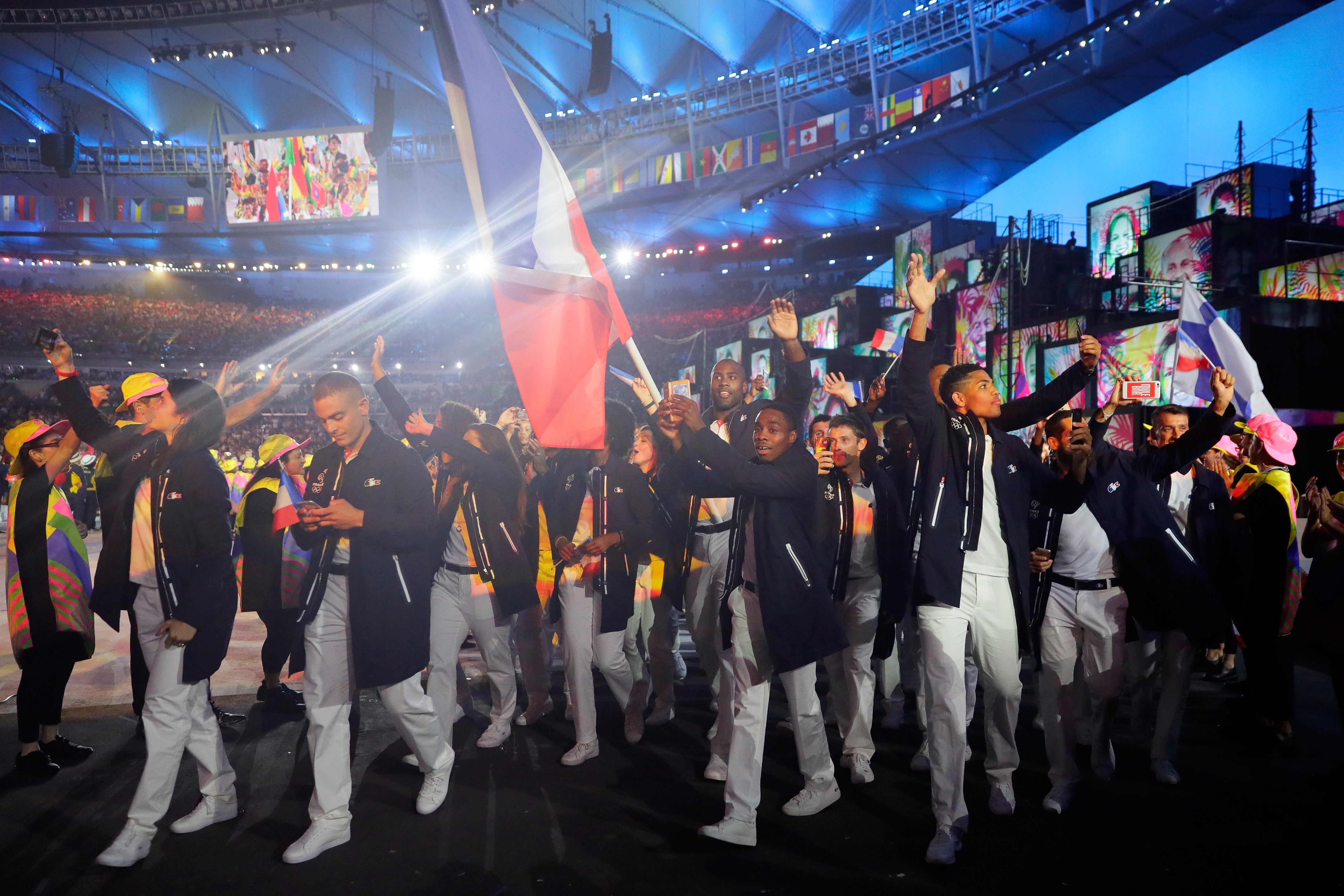 Team USA kept it real preppy with Ralph Lauren-designed uniforms that screamed, “America is here, and ready to (politely) party!” The best athletes of the United States made their glorious entrance outfitted in striped red, white and blue shirts covered by a classic Ralph Lauren navy blazer and casual boat shoes. Nothing says confidence like a pair of white jeans!