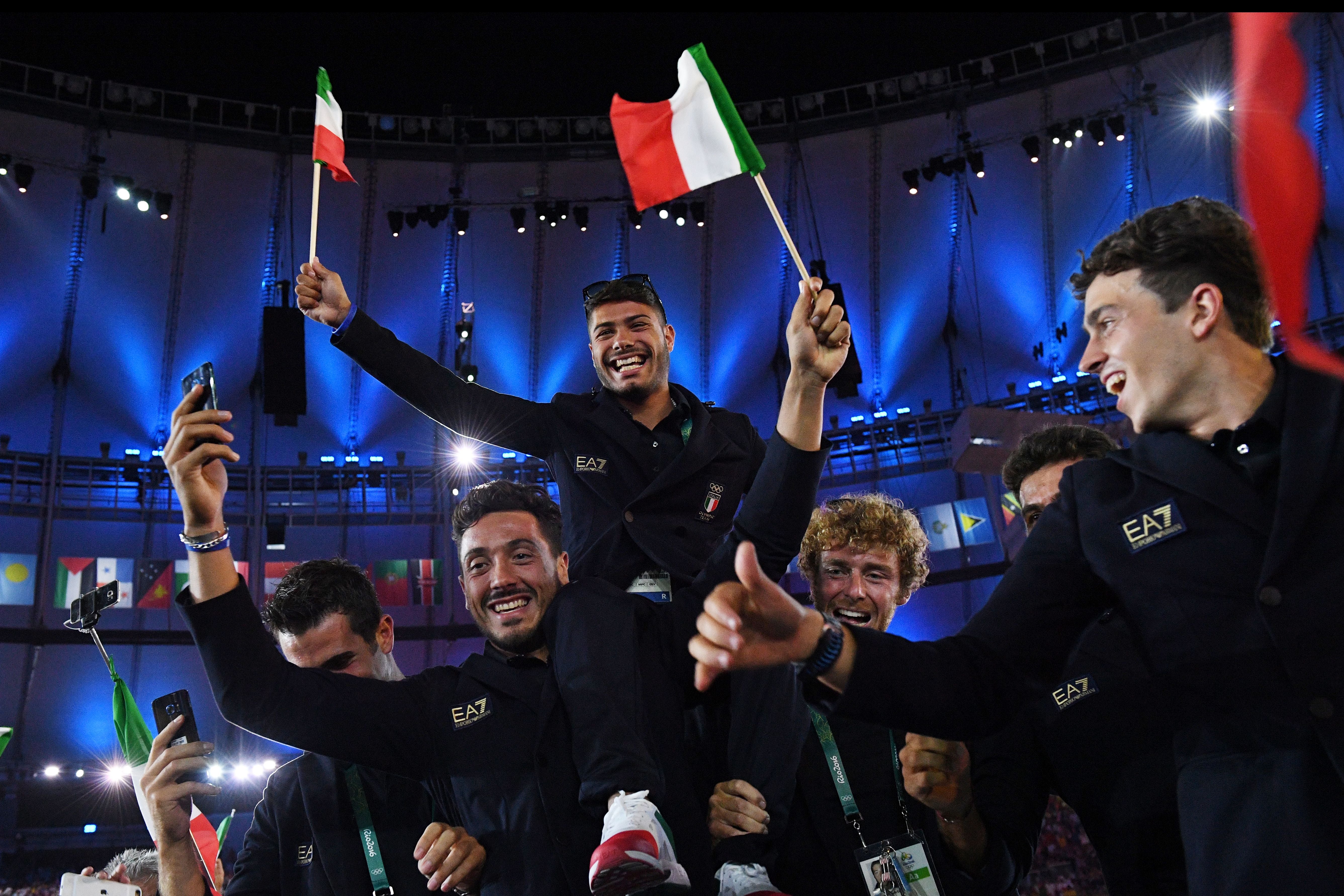 Team Italy kept it slick, sophisticated, and very Euro in their sporty Giorgio Armani black tracksuits with white detailing. Who needs colors when you have Armani?
