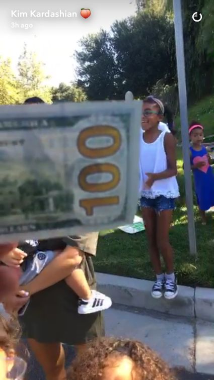 She then hands out a $100 dollar bill to one lucky kid that’s part of the fab group, asking again, "Where's my lemonade?"