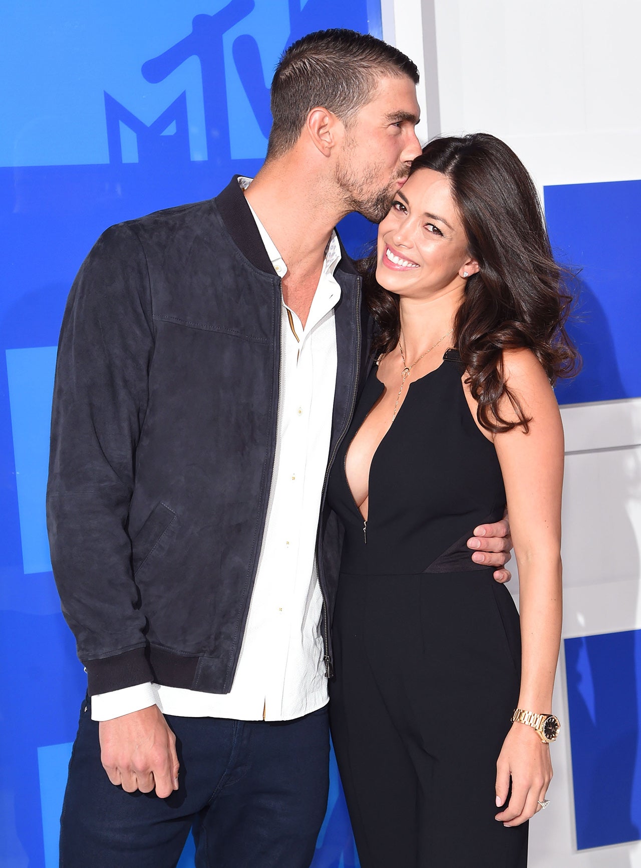 Fresh off his historic final Olympics run, the gold medal winner and his fiancée cuddled close together at the VMAs, where Phelps introduced Future's performance. Sadly for us, they left baby Boomer at home.
