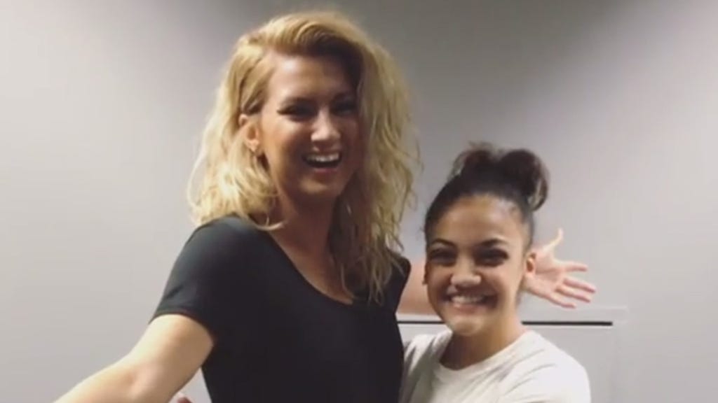 The Dancing With the Stars competitor was hanging out backstage before Kellogg's Tour of Gymnastics Champions, which she was performing in on Saturday with her fellow Team USA gymnasts, when the "Dear No One" singer surprised her megafan.