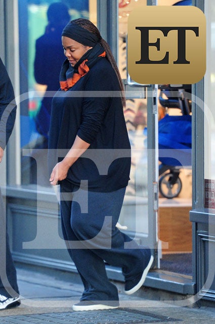 ET was the first to report back in May that the 50-year-old singer is pregnant with her first child with husband Wissam Al Mana, and only ET has these exclusive new photos taken Tuesday afternoon, when she was spotted out and about in London with a visible baby bump. Jackson, who is rarely photographed in public, was seen leaving the baby furniture store Back In Action wearing sneakers, dark sweatpants, a black sweater and a matching scarf and headband.