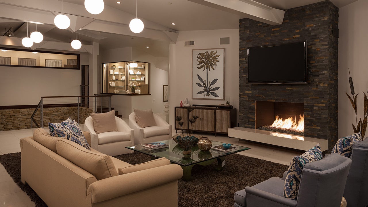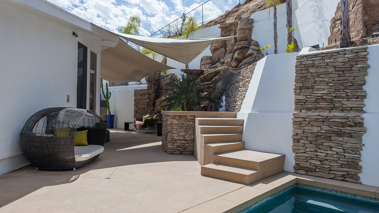 In addition, the house, which is being listed by The Agency, has wrap-around observation decks accessible from every bedroom, with views of Studio City and the Hollywood sign; terrazzo floors in the front entry; stone accent walls; a large media room with a full kitchen, bathroom, fireplace, and French doors to the lower-level deck; and two spacious en-suite guest rooms. Not only that, but the master suite also has its own fireplace, designer bathroom, showroom closet and backyard access.