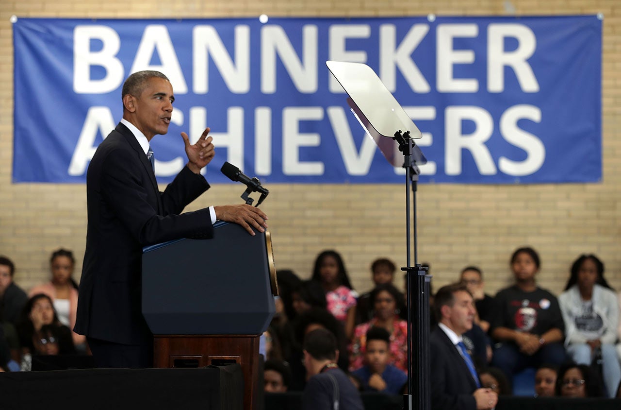 While speaking to students at Washington D.C.'s Benjamin Banneker Academic High School on Tuesday, the Commander-in-Chief brought up his own experience raising two teenage daughters -- 18-year-old Malia and 15-year-old Sasha -- and couldn't help but tease them for their texting habits.