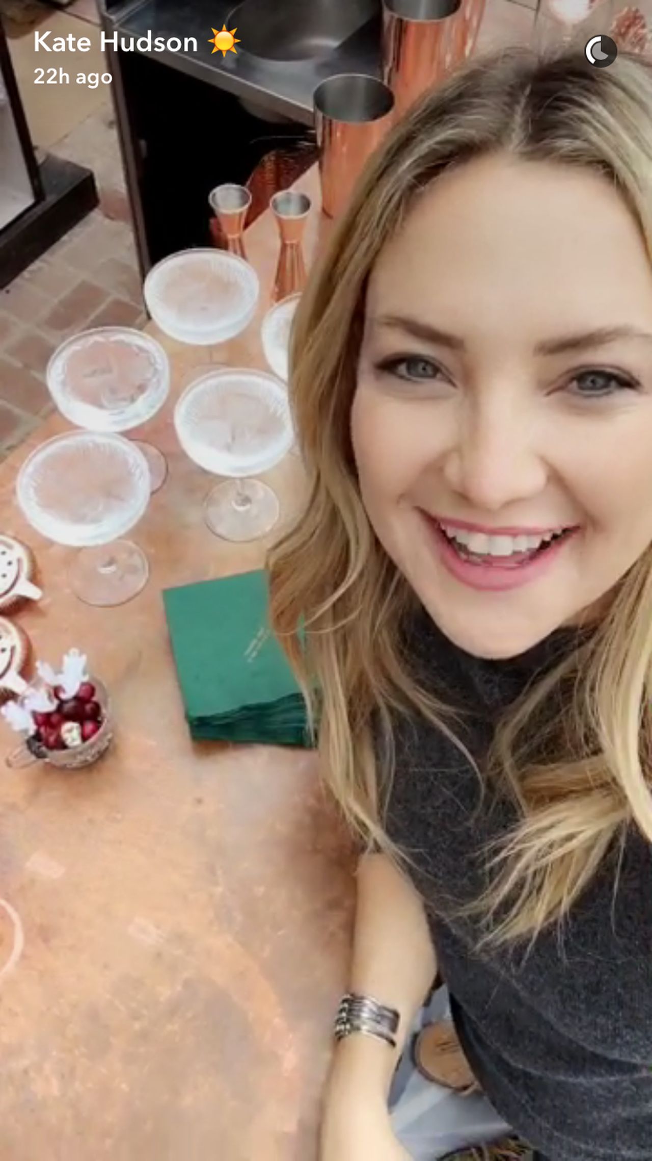 While hanging with pal Jennifer Meyer, Hudson walked down to the bar area, where the bartender gave step-by-step instructions over the popular app on how to make "Kate Hudson's Bloody Cosmo," the signature Absolut Elyx cocktail guests will be treated to Friday night.