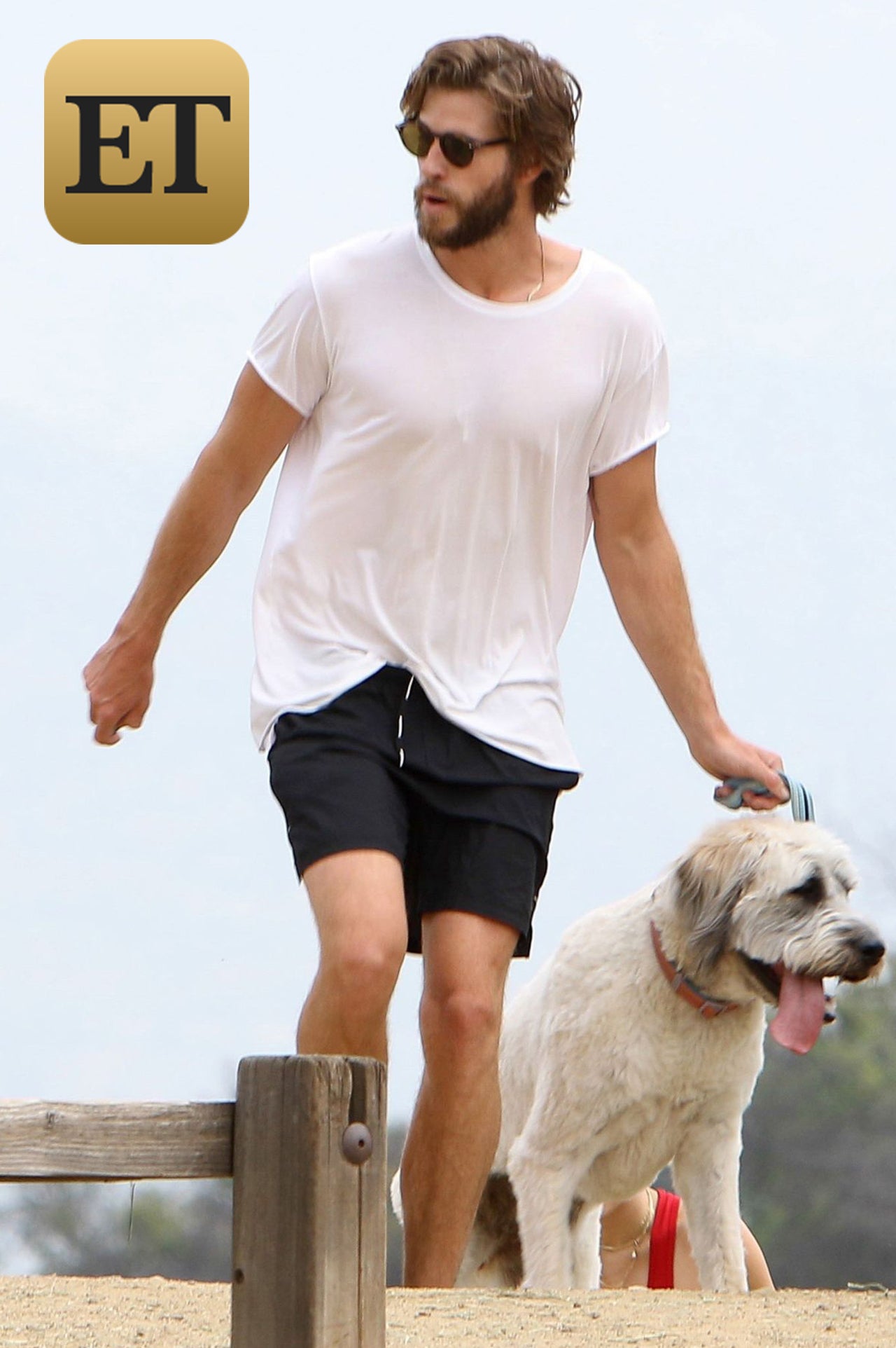 Hemsworth went super casual for the outing, sporting sunglasses, a plain white T-shirt, Nike board shorts and olive green sneakers while walking Dora.