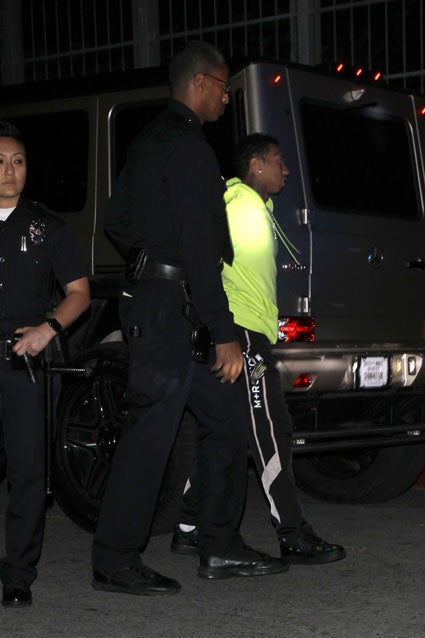 Tyga was seen being hauled away in handcuffs by police after leaving Hollywood's Avenue Nightclub on Tuesday night.