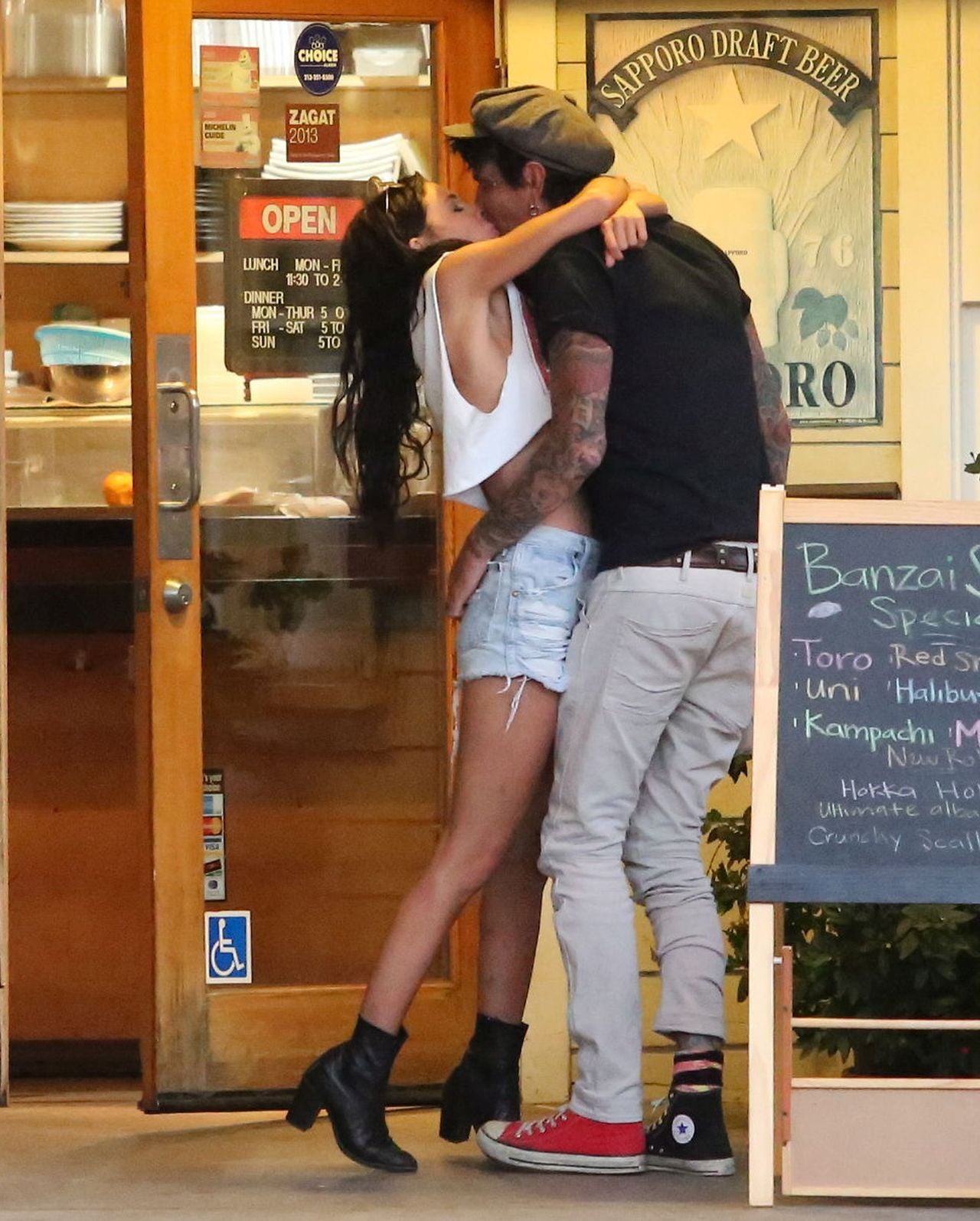 The two were caught sharing a smooch after a sushi dinner date in Calabasas, California.