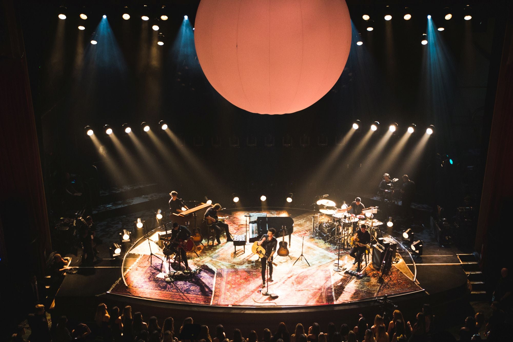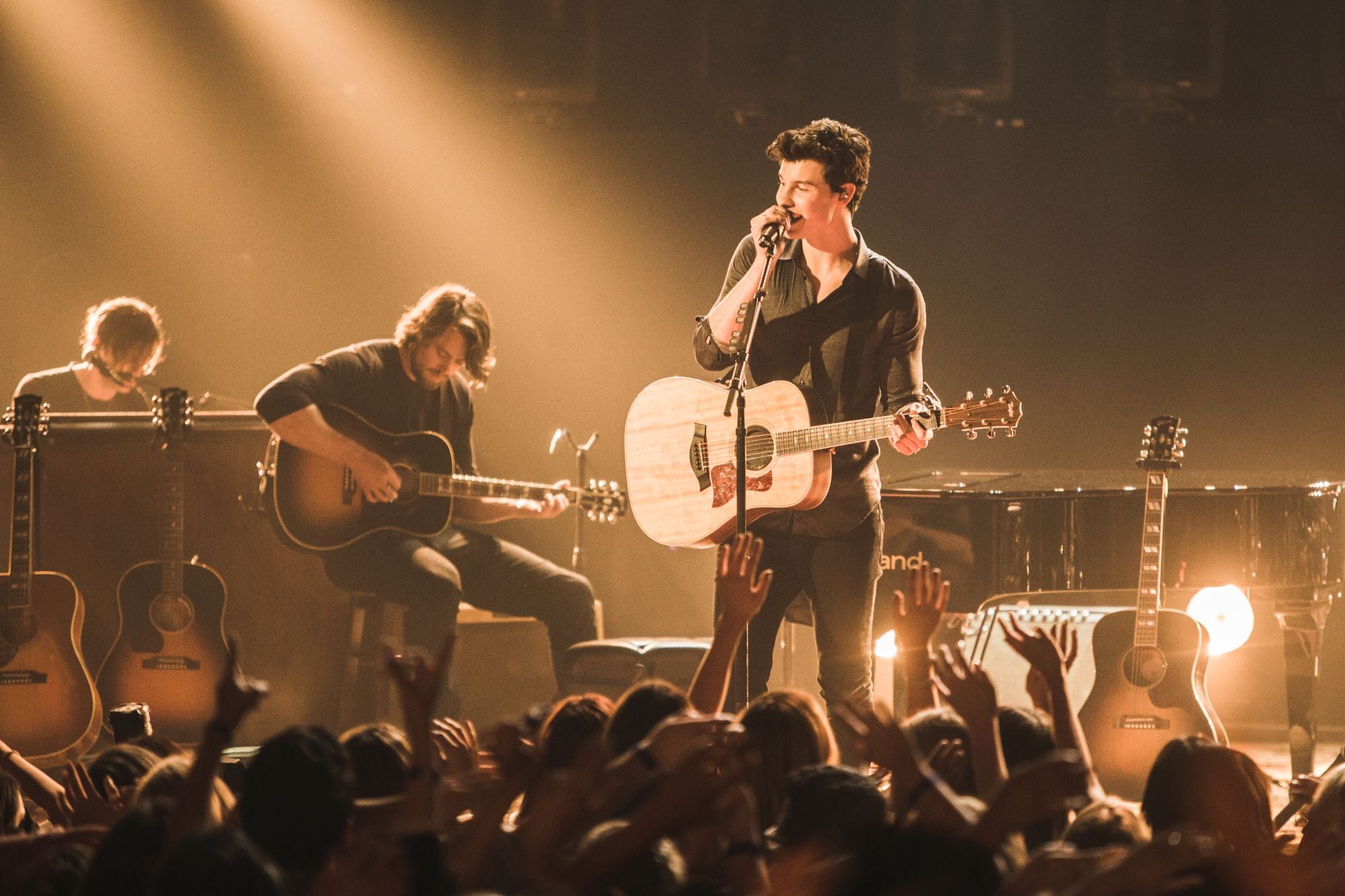 Hours before the Vine star-turned-pop artist began his show, lucky fans who obtained a ticket were lined up around the block at the venue. Once they were ushered in, they were in awe at Mendes' set. Nine various guitars were placed around the stage, with a full drum set, keyboard, piano and strings. Producers told fans they would need to be up on their feet and out of their seats for the entirety of the show.