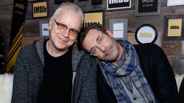 Hamm cozied up to his buddy as they hung out with fellow actors in IMDb Studio's Filmmaker Discovery Lounge on Jan. 23.