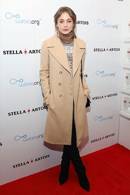 The British actor rocked a long tan trench coat to the Mudbound party in the Stella Artois Filmmaker Lounge on Jan. 21.