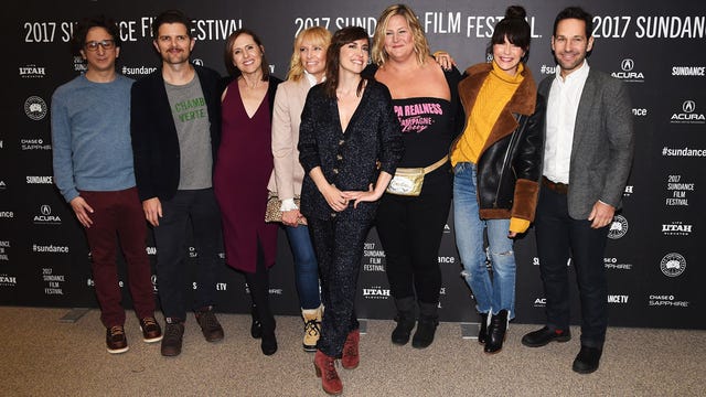 Paul Rust, Adam Scott, Molly Shannon, Toni Collette, Alethea Jones, Bridget Everett, Katie Aselton and Paul Rudd attend the Fun Mom Dinner premiere on Jan. 27, 2017 in Park City, Utah.