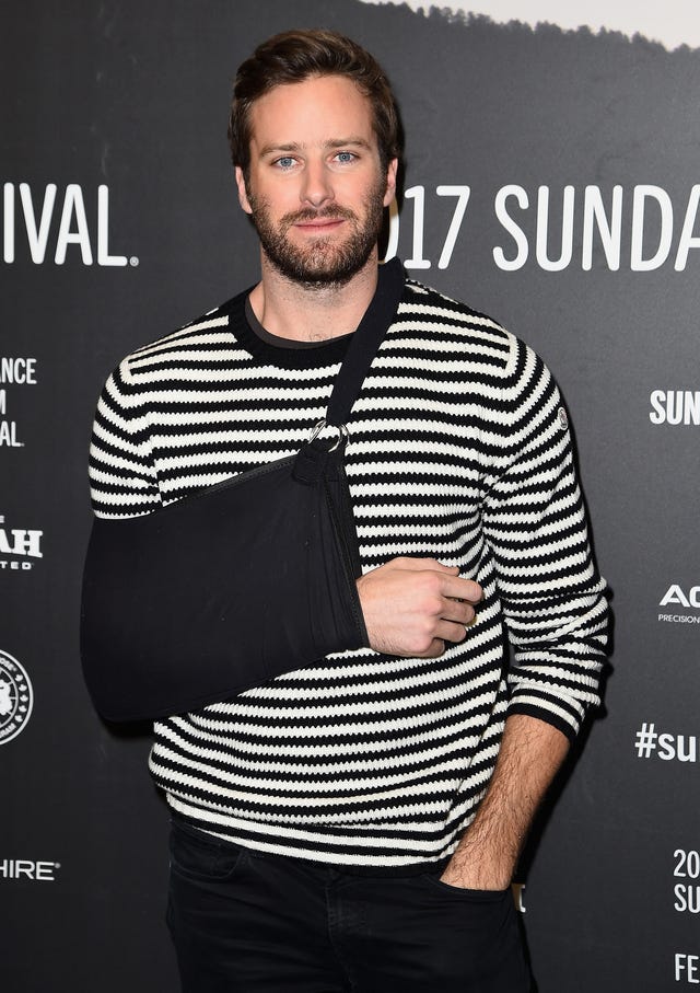 The 30-year-old actor rocked a black-and-white striped sweater to the premiere of his new film, Call Me By Your Name, at the Eccles Center Theatre on Jan. 22. Hammer wore his right arm in a sling as he recovers from recent surgery to fix a torn pectoral muscle.