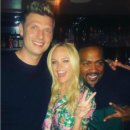 Timbaland, Emma Bunton and Nick Carter celebrated the season finale of their competition show, Boy Band, at the Doheny Room in L.A. on Aug. 24, getting especially giddy when they heard “Eyes Closed” playing over the speakers. The song is by In Real Life, the band created on the show.