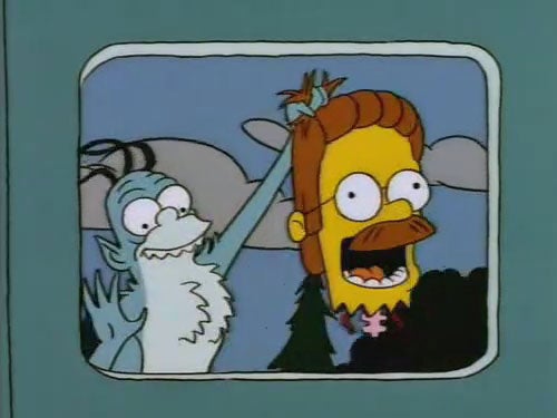 Of all the "TOH" segments on this list, "Nightmare At 5 ½ Feet" leaves us with the most unsettling image of all: A gremlin holding the severed head of a still-smiling Ned Flanders, spinal column and all. Good luck sleeping.