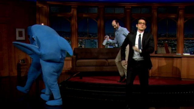 John Mayer appears to be on-again with Katy Perry. The 37-year-old singer/songwriter guest hosted the Late Late Show on Wednesday, and while Perry was not a guest, her Super Bowl halftime show sharks were brought on the show as well as their "handler."