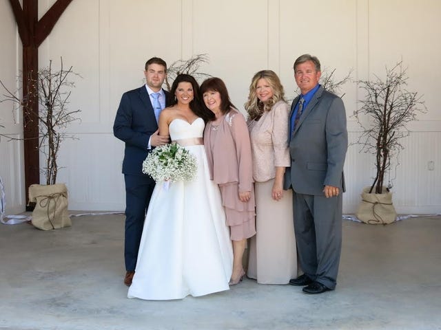 Amy's grandmother, Mary, mom, Deanna and dad, Terry Jordan, posed with the new couple at the altar.