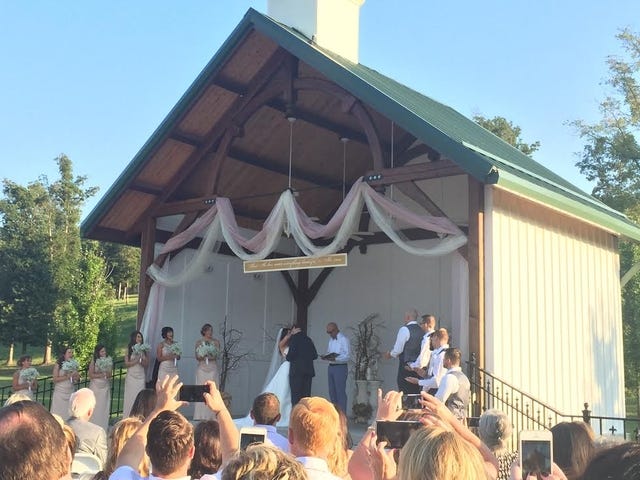 Amy and Dillon sealed the deal with a passionate kiss in front of about 400 cheering guests.