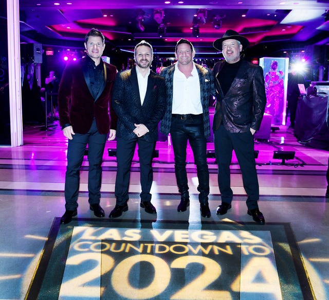 Nick and Drew Lachey, Jeff Timmons and Justin Jeffre of 98 Degrees attend the Nexstar Las Vegas Countdown to 2024 on Dec. 15 in Las Vegas, Nevada.