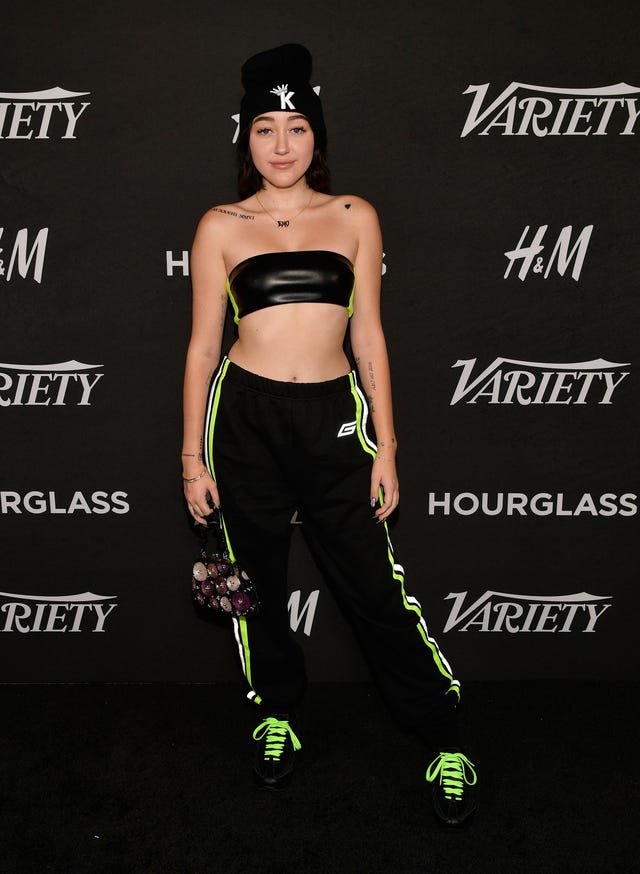 She looks so much like her sister these days! Miley Cyrus' lil sib -- a singer in her own right -- rocked a very sporty look to Variety's Power of Hollywood soiree in Hollywood. She teamed a black-and-neon yellow latex tube top with a matching pair of athletic pants and sneakers, topping it all off with a black knit hat.