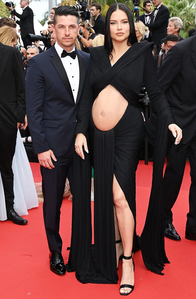 Model Adriana Lima bares her baby bump with boyfriend Andre Lemmers at the screening of Top Gun: Maverickduring the 75th annual Cannes Film Festival on May 18.