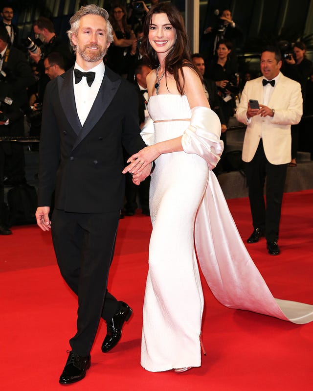 Actress Anne Hathaway and her husband, Adam Shulman, leaving from the screening of Armageddon Timeduring the 75th annual Cannes Film Festival on May 19.