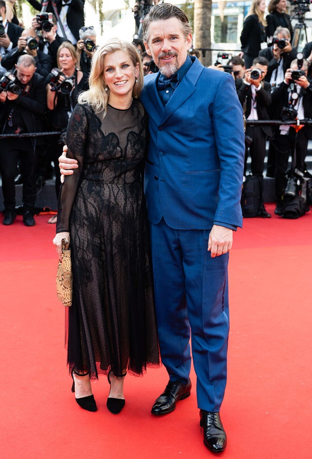 Actor Ethan Hawke and his wife, Ryan Hawke, arrive at the screening of two chapters of his six-part documentaryfilm, The Last Movie Stars, during the 75th annual Cannes Film Festival on May 20.