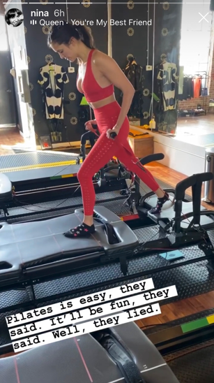 The Vampire Diaries alum listened to Queen during a Pilates workout that she joked she got "lied" to about being fun. At least she looked red hot in her Gigi CSport V-neck sports bra and leggings!