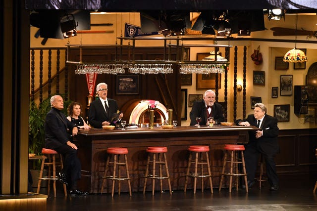 Ted Danson, Rhea Perlman, Kelsey Grammer, John Ratzenberger and George Wendt go back to the bar and reunite onstage at the Emmys.