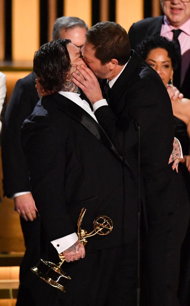 The producer and the actor pose together at the Emmys.