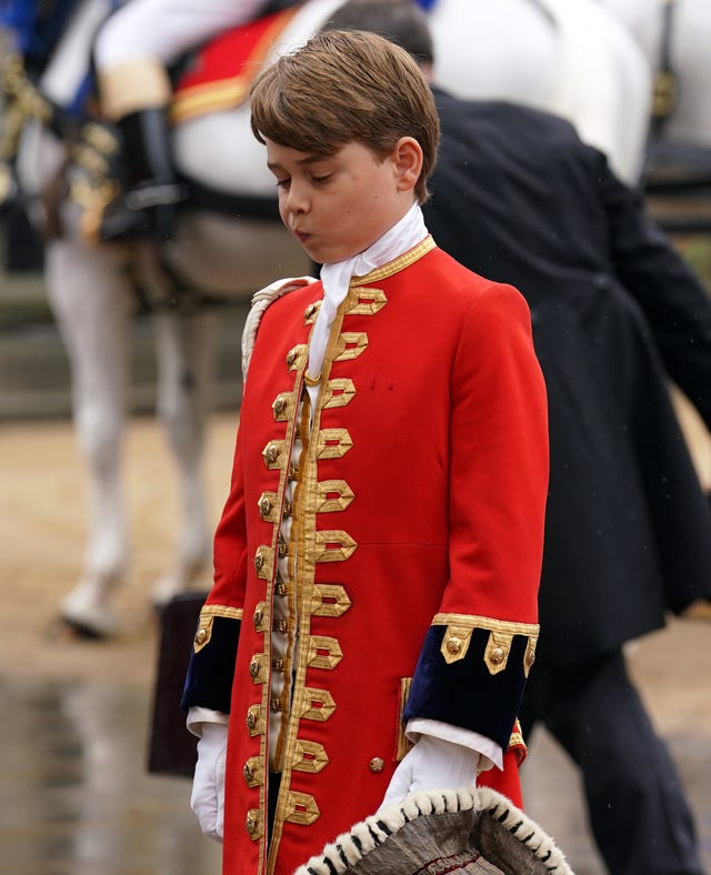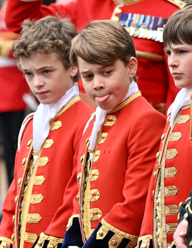 Prince George keeps busy making more silly faces during the coronation on May 6 in London, England.