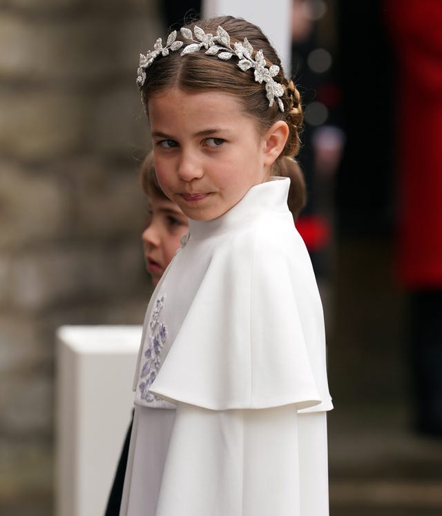 Something has caught the attention of Princess Charlotte and Prince Louis during the coronation ceremony.