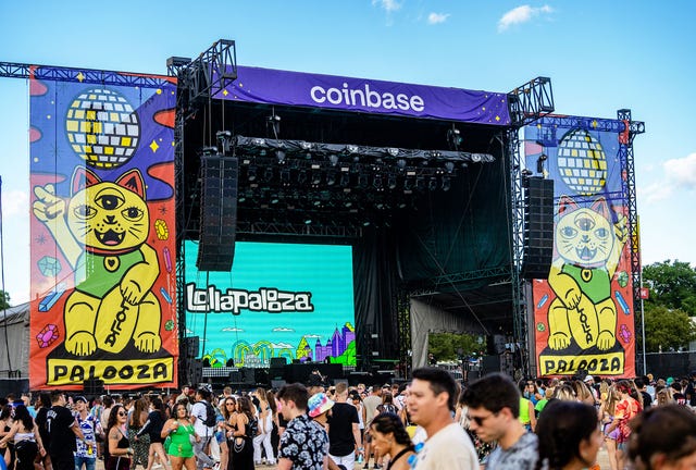General view of the atmosphere at the Coinbase stage at Lollapalooza in Chicago, Illinois.