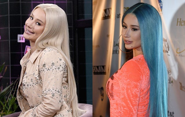 The Australian rapper's pinstraight blonde locks were upgraded to a bright blue hue for the WNBA All-Star Game 2019.