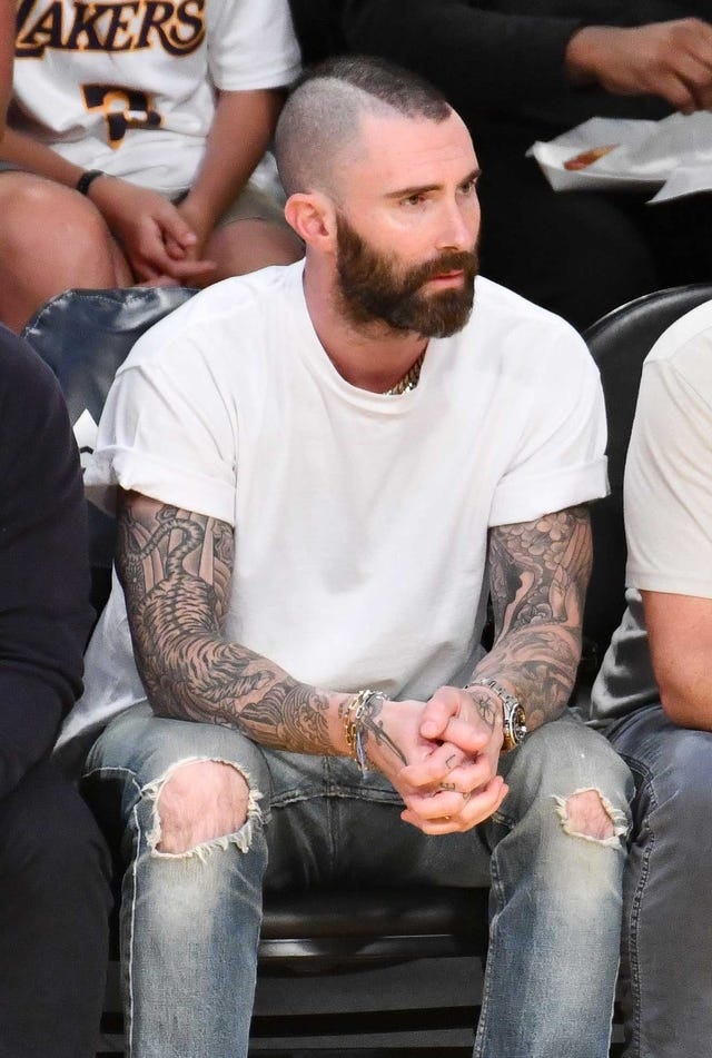 The Maroon 5 frontman's mostly-shaved head and faux hawk was on full display at a Los Angeles Lakers vs. Memphis Grizzlies game at L.A.'s Staples Center on Oct. 29.