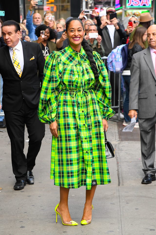 Both the Black-ish star and her neon green plaid dress were glowing outside the Good Morning America set in New York City on Oct. 14.