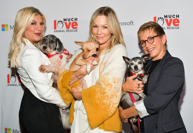 Puppy love! The BH90210 stars made some new four-legged friends at the Much Love Animal Rescue 3rd Annual Spoken Woof Benefit in Culver City, California, on Oct. 17.