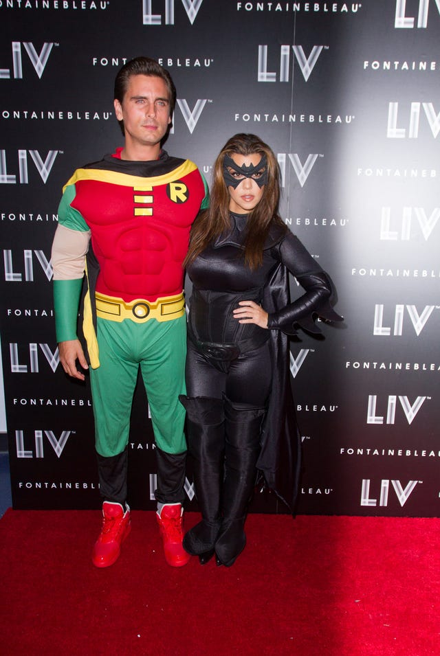 Kourtney opted to stay in the same superhero family for Kim's soiree, powering up as Batman to then-boyfriend Scott Disick's Robin.