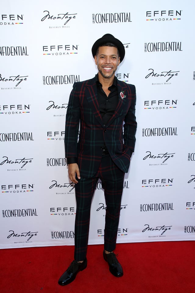 The 13 Reasons Why star looked quite dapper in his dark plaid suit and black hat at Los Angeles Confidential magazine's "Portraits of Pride" event, which was hosted by GLAAD and Laverne Cox to kick off Pride Month at the Montage in Beverly Hills on June 4.
