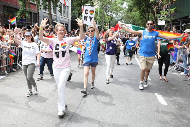 Cynthia Nixon attended the 2018 NYC Pride March on June 24. The Sex and the City star, who is currently running for governor of New York City, has been married to her partner, Christine Marinoni, since 2012.