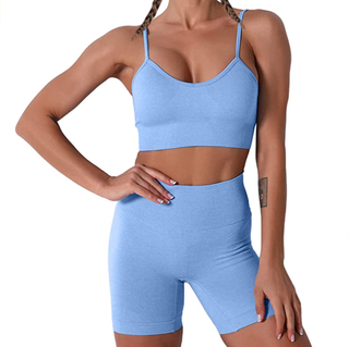 A cute two-piece set that features a strappy sports bra and high waist leggings.