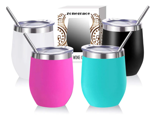 Zonegrace 4 pack 12 oz Stainless Steel Stemless Wine Glass