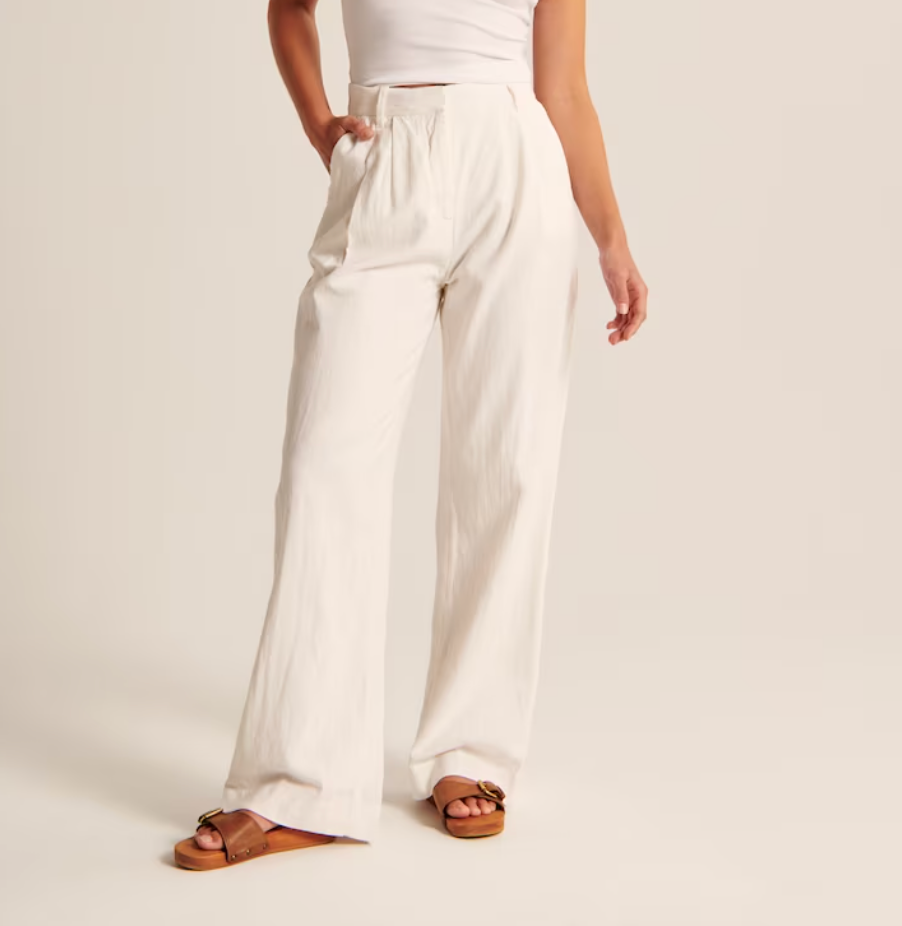 Abercrombie and Fitch Linen-Blend Tailored Wide Leg Pant