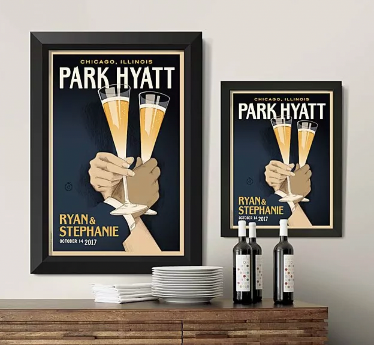 Cheers to the bride and groom on their wedding day and beyond with this eccentric art piece from Uncommon Goods.