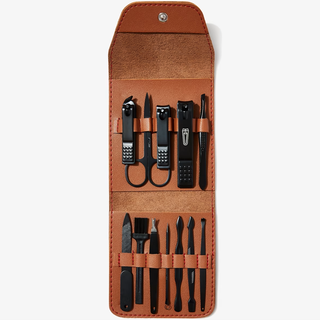Folding up to store in a convenient pouch, this grooming kit has everything he needs to groom his face, hands and feet. The stainless steel tools include nail clippers, toenail clippers, tweezers, scissors and more.